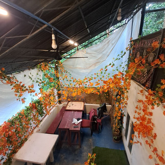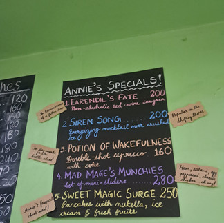 A visitor to Eve's Coffee on the days our event would be greeted with a curated tavern music and our members at the welcome desk, who would talk to them about the world of TTRPGs, after which they could take a sip of the special menu items we've created with the help of Eve's. Going through the portal door, they would be teleported to the the fey forest that held our small stall, the dungeon which held the continuous game, and the tavern styled top floor which held all our events.